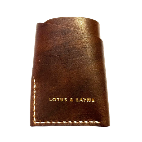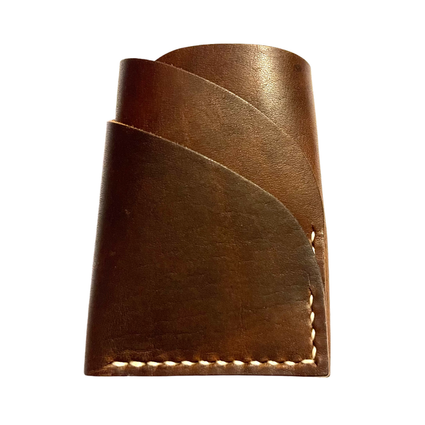 This Canyon wallet is handcrafted from world famous Horween Dublin leather. The Canyon wallet is cut and stitched by hand using old time methods to create a unique modern design. The edges are hand burnished using a time tested technique to create a smooth finish. This wallet will develop a beautiful patina that will only get better as it ages. The Canyon wallet is sure to become your favorite everyday carry.